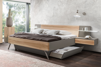 Ящики у кровати могут быть выдвижными и внутренними. В первом случае, несмотря на функциональность, кровать нуждается в дополнительном пространстве для того, чтобы обратиться к содержимому ящика. Во втором случае, особенно если кровать оборудована откидным механизмом, никакого дополнительного пространства не требуется.