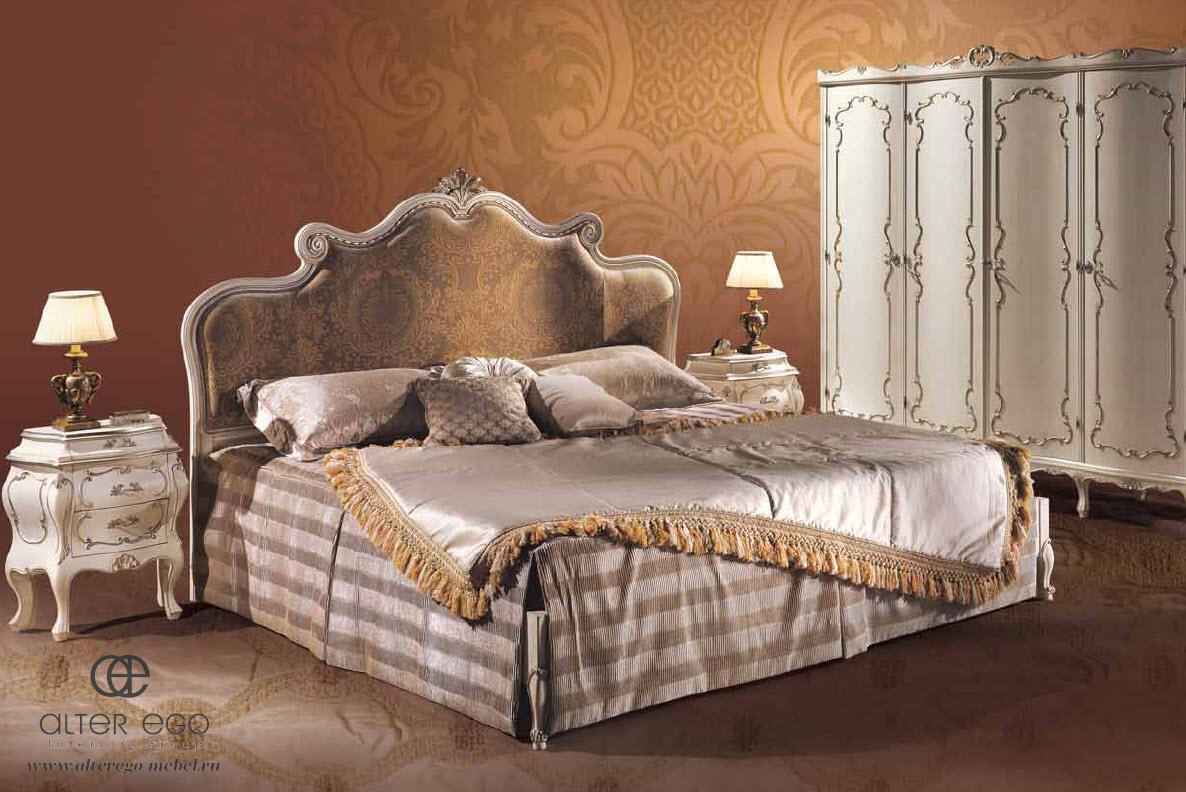 Элегантная спальня BOITO – помпезная, очаровательная, эффектная. Ее дизайн сочетает в себе элементы современности и стиля ампир. Индивидуальность коллекции придает необычная лакировка с отделкой позолотой и серебром. Мягкое фигурное изголовье кровати дополнено эффектной ручной резьбой и обивкой из дорого шелкового текстиля, украшенного изящным принтом.