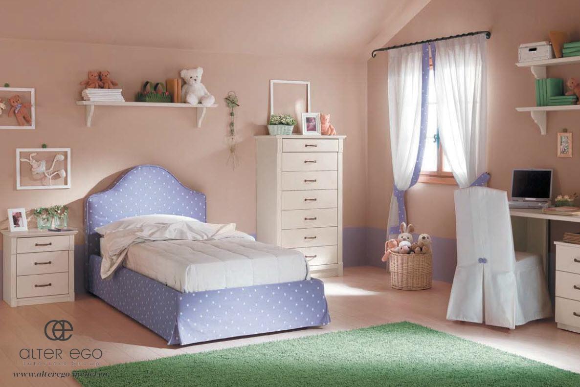 Детская, о которой можно мечтать! Комплект мебели для детской комнаты BURRO — шедевр от итальянского бренда Callesella. В серию входит продуманная спальная зона, включающая в себя кровать, пуф и прикроватную тумбу, а также система хранения — комод и навесные полки. Прочные устойчивые в повреждениям конструкции изготовлены из натуральной древесины и покрыты безопасным полимерным составом. В отделке используется текстиль.
