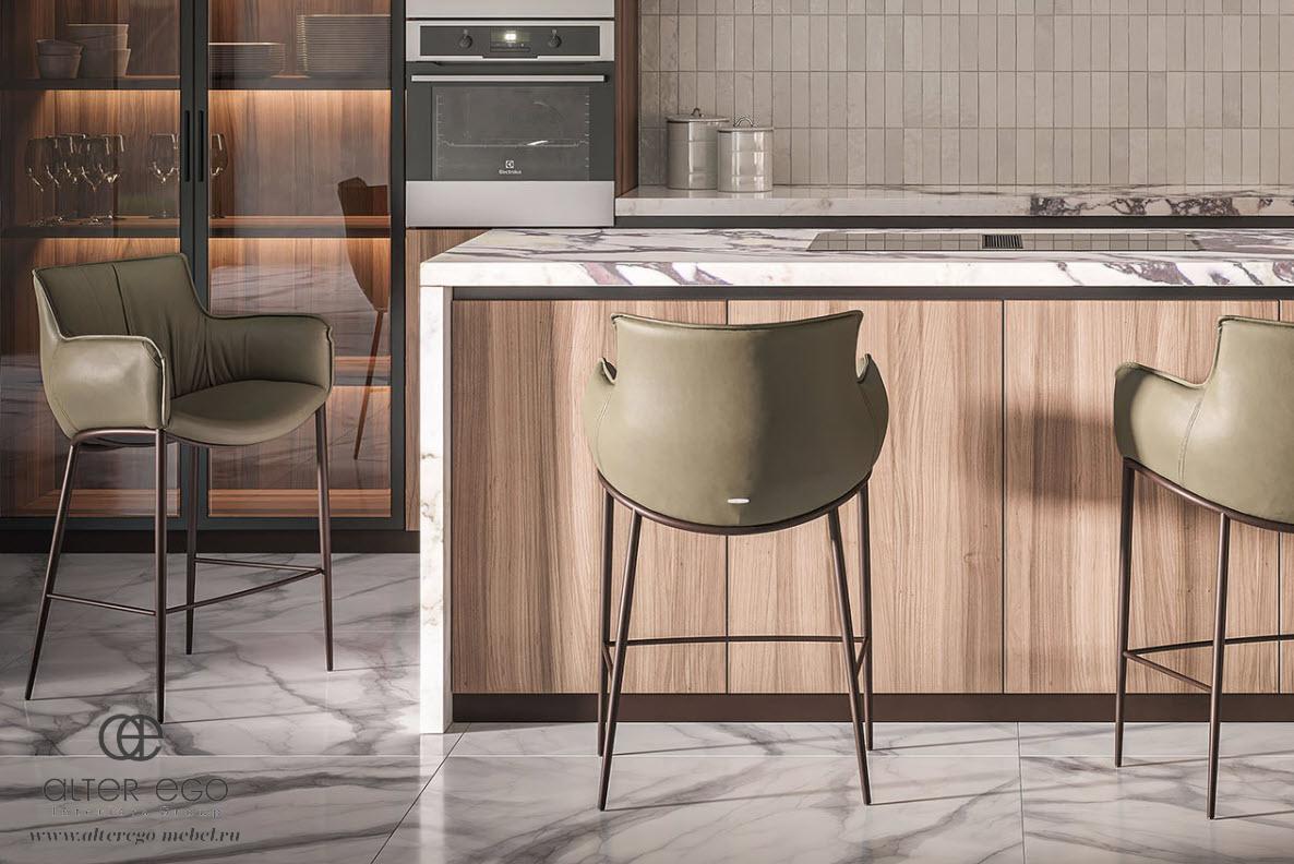 Барный стул RHONDA фабрики Cattelan – комфортная модель для современных жилых интерьеров и офисных пространств. Основание изделия металлическое, тонкие ножки могут быть выполнены из древесины или металла. Мягкая обивка кресла с изящными складками внутри и гладкая снаружи может быть выполнена в коже или текстиле в цвете на выбор по каталогу производителя.