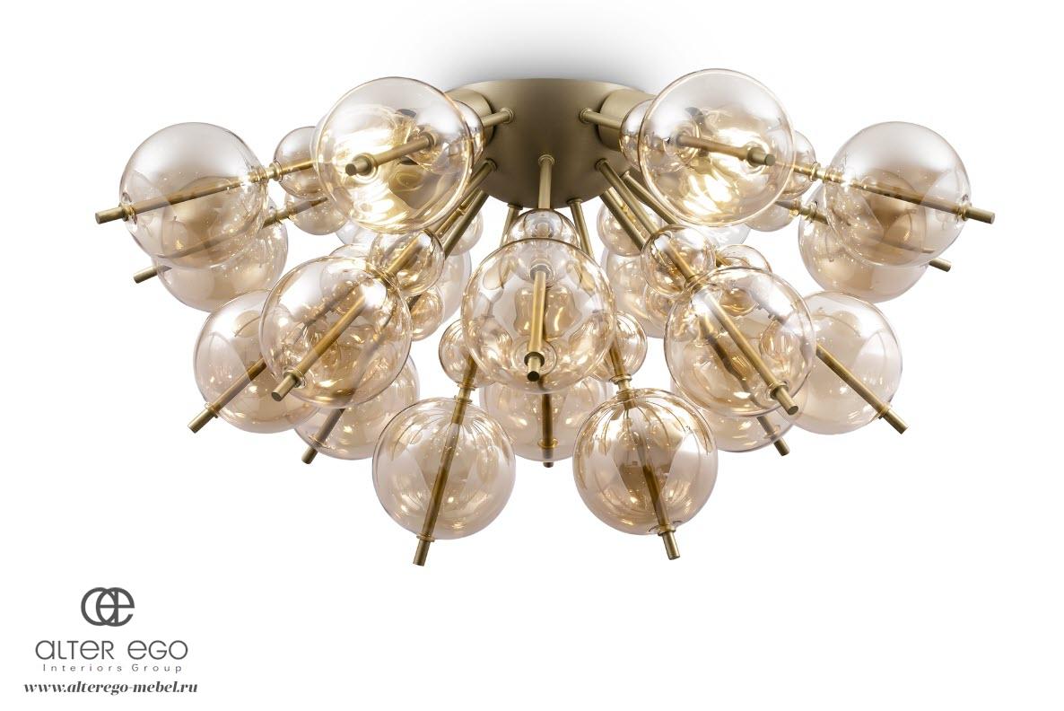 Оригинальная дизайнерская люстра BOLLA от немецкой фабрики Maytoni создана для современных, оформленных со вкусом жилых интерьеров. Светильник состоит из металлического каркаса и нанизанных на него стеклянных шаров-плафонов. Под заказ доступно два варианта отделки: хромированная фурнитура с дымчатым стеклом и латунная фурнитура с янтарным стеклом.