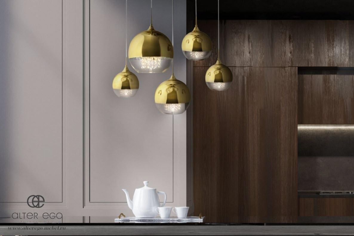 Оригинальный подвесной светильник FERMI фабрики Maytoni способен украсить собой любое помещение, интерьер которого оформлен в современном стиле. Эффектная модель состоит из отдельных разноразмерных световых форм, собранных на едином основании. Стеклянные купола изделия наполовину тонированы золотом и выглядят невероятно эффектно.