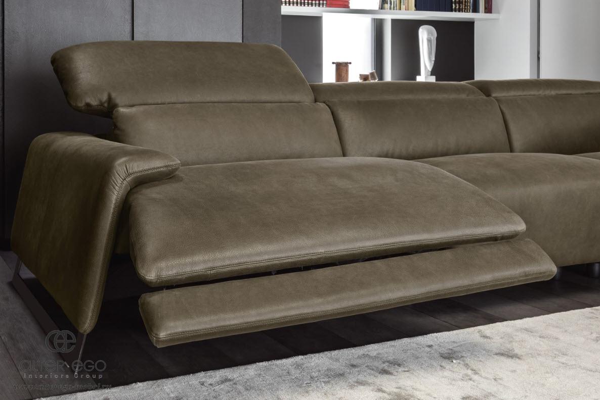 Респектабельный кожаный диван CANALETTO итальянского производства. Эффектная современная модель на массивном металлическом основании-рамке в корпусе из натурального деревянного массива. Изделие углового формата оснащено мягкими подголовниками и эргономичными подлокотниками по краям.