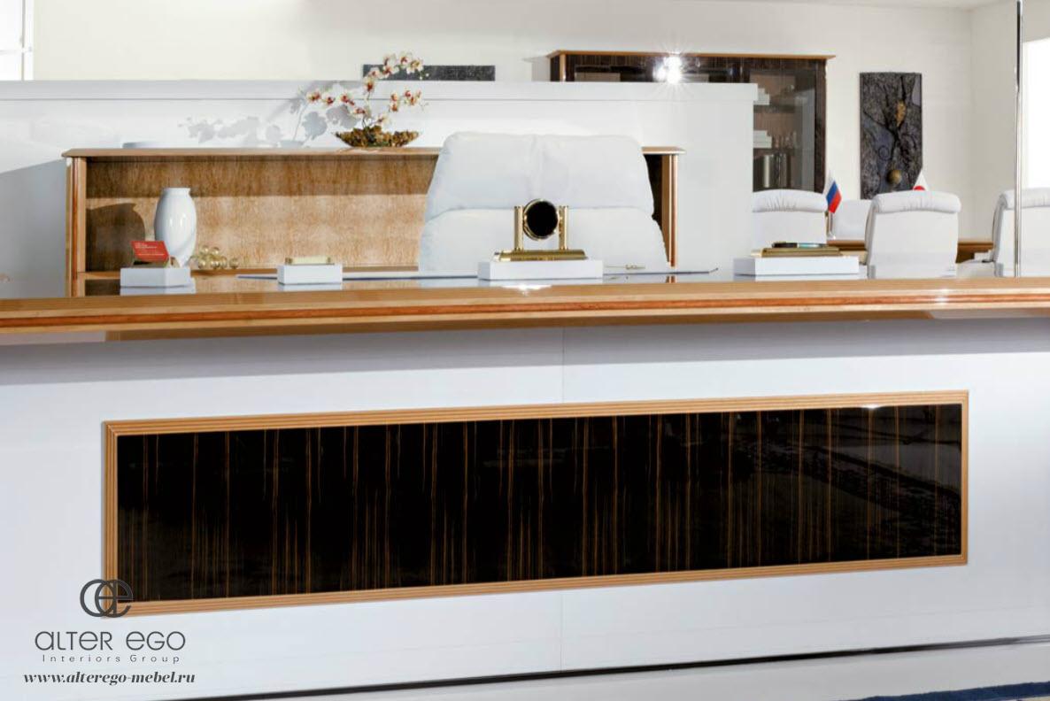 Необычный кабинет SUPREMA современного дизайна включает все необходимое для создания в помещении дома или небольшого офиса красивой и функциональной меблировки, позволяющей успешно работать. Комплект состоит из большого письменного стола оригинального оформления, тумбы под документы, комбинированного стеллажа и мягкого рабочего кресла в яркой белой обивке.