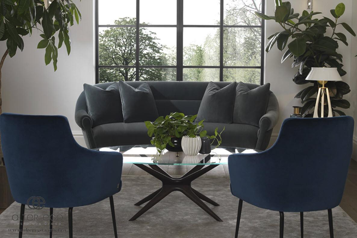 Изящный гостиный диван CURVA в современном стиле без опций трансформера. Модель собрана в интересном полукруглом корпусе «капсульной» формы из деревянного массива и обита эффектным мебельным текстилем типа меланж. Оригинальное изделие установлено на тонкие невысокие ножки, украшено разделяющей и фигурной строчками, а также набором декоративных подушек.